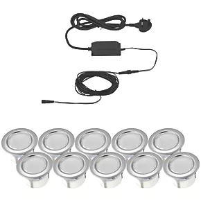 LAP Apollo White 45mm Outdoor LED Deck Light Kit Polished Stainless Steel 4.8W 10 x 18lm 10 Pack