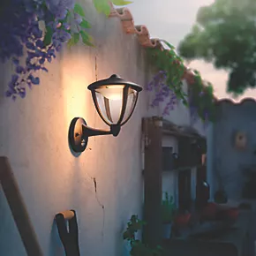 Energy-saving, LED lamp with classic shape and modern details, offering elegant style to outdoor spaces with a contemporary touch. Motion sensor